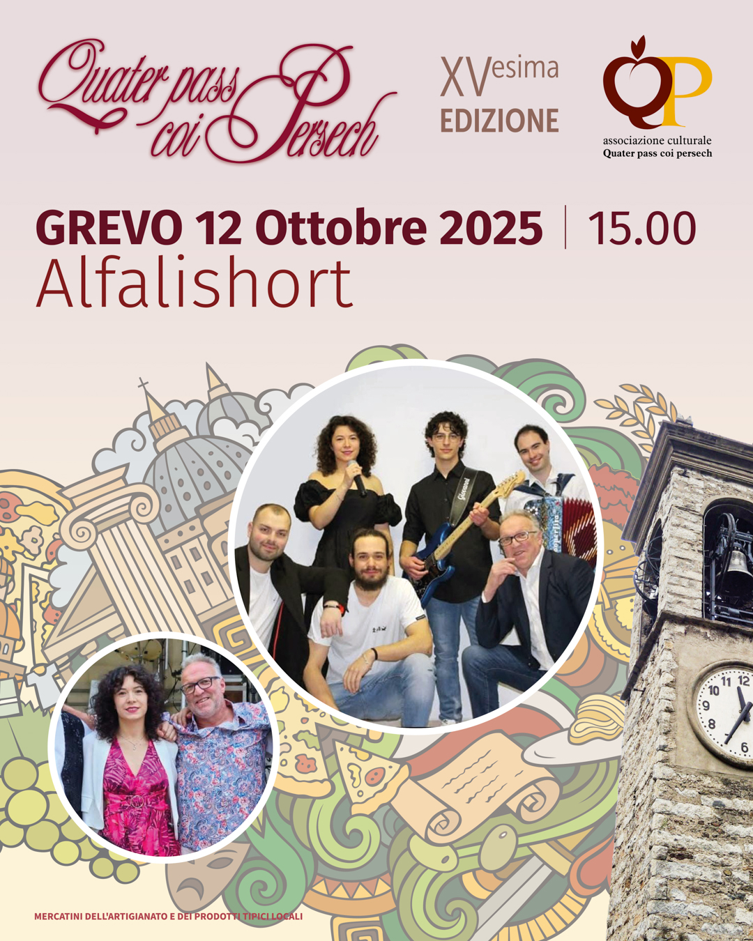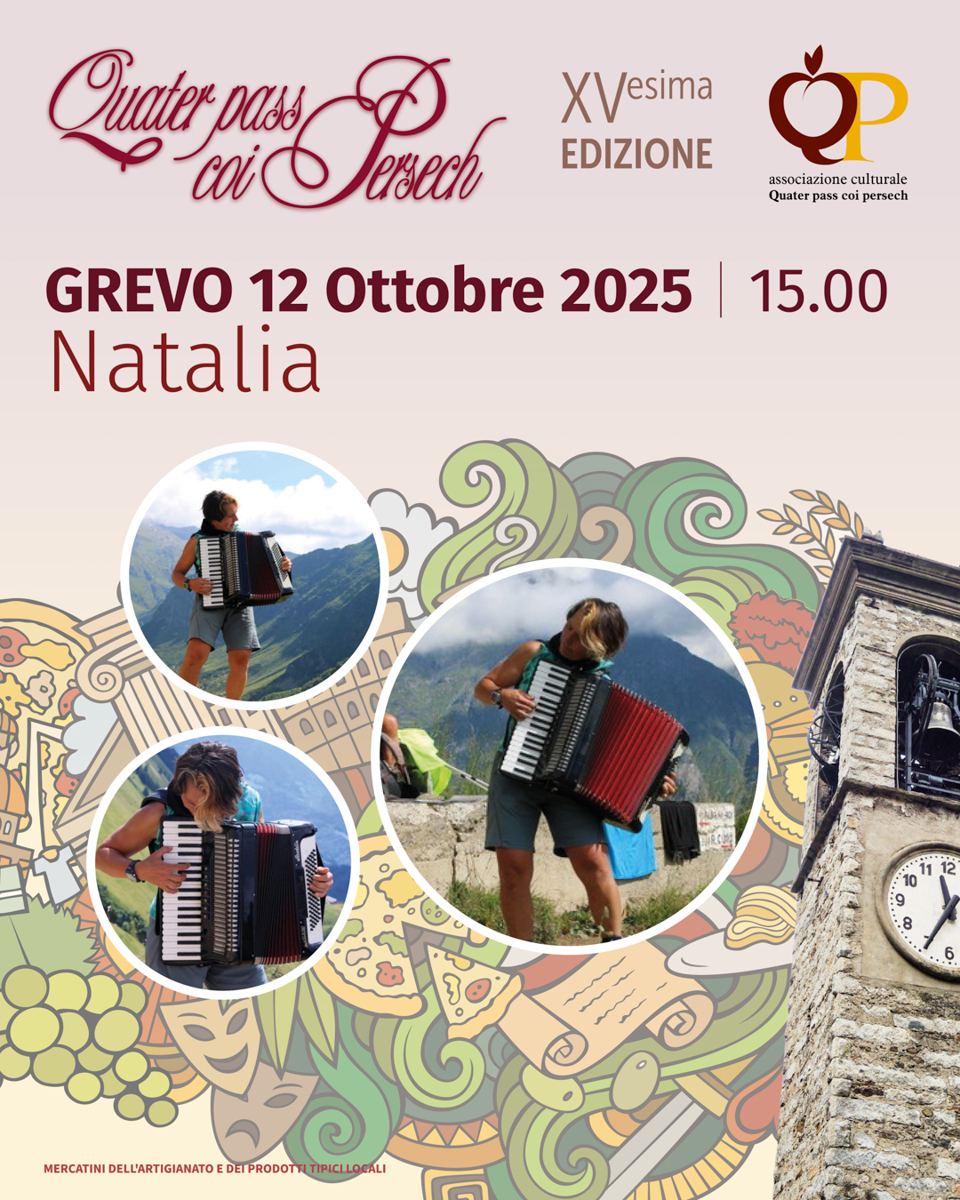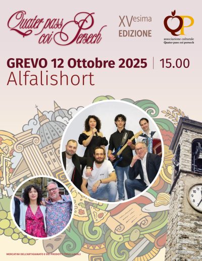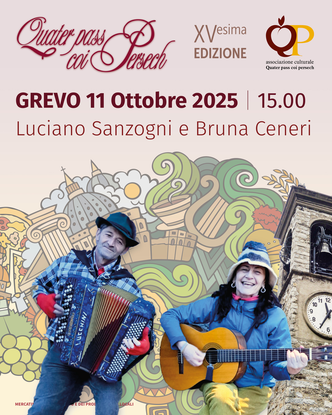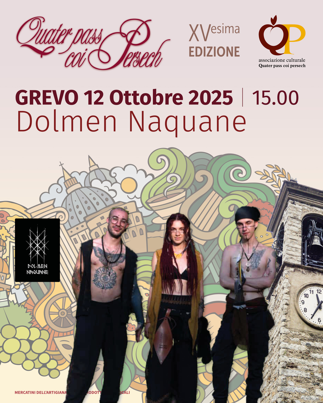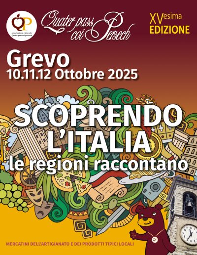Benvenuti a Quater Pass coi Persech, un viaggio nelle tradizioni delle regioni italiane. Incontreremo saperi antichi, canti e danze popolari, artigianato d’eccellenza, sapori di territori unici, storie di comunità che custodiscono identità e futuro.